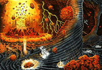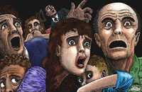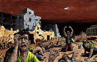 On the left below are links to The Bible Story as it first appeared in the Plain Truth and Tomorrow's World magazines.  Originally 156 chapters, the 1960s set above contains just the first 99 chapters, and the 1980s set contains 154 chapters (ch.47/48, 56/57 edited & combined).  Below right is the Wolverton Bible, a collection of Basil Wolverton's WCG artwork, which can be ordered from Amazon.com .  Below that are some Basil Wolverton images that were colorized by his son, Monte (copyright Monte Wolverton).  More Wolverton material is available at www.wolvertoon.com .